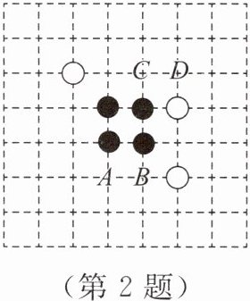 2. 围棋起源于中国,古代称为“弈”。两位同学的部分对弈如图所示,现在轮到白方落子,观察棋盘,白方如果落子于点