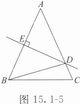 【例1】如图15.1-5,在△ABC中,AB= AC= 20 cm,DE垂直平分AB,垂足为E,交AC于点D. 若△DBC的周长为35 cm,则BC的长为( ).