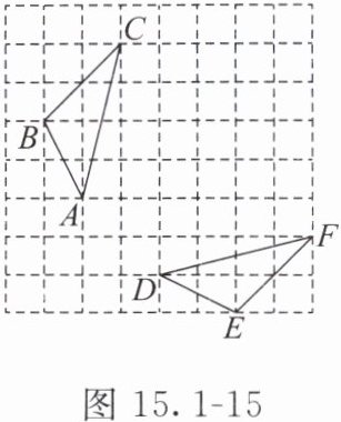 (3)如答图15.1 - 1,△MBC即为以BC为一边且与△ABC全等(不与△ABC重合)的三角形,这样的三角形在该网格内共能画出1个.
