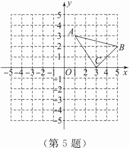 5. 如图,在平面直角坐标系中,每个小方格都是边长为 $1$ 的正方形,$\triangle ABC$ 的顶点均在格点上。