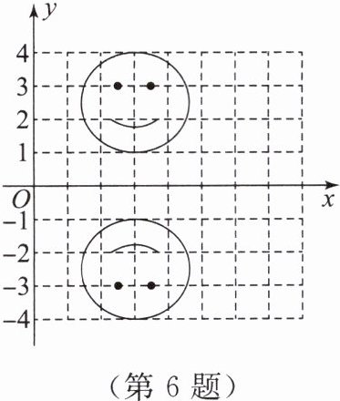 6. 如图,上、下两幅“娃娃脸”图案关于 $x$ 轴对称,下图中左、右“眼睛”的坐标分别为 $(2.5,-3)$,$(3.5,-3)$,则上图中左、右“眼睛”的坐标分别是