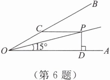 6. 如图,$OP$ 平分 $\angle AOB$,$\angle AOP = 15^{\circ}$,$PC // OA$,$PD \perp OA$,垂足为 $D$,$PC = 10$,则 $\triangle OPC$ 的面积是