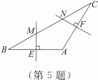 5. 如图,在 $\triangle ABC$ 中,$AB = AC$,$\angle A = 120^{\circ}$,$BC = 9\ cm$,$ME$ 是 $AB$ 的垂直平分线,$NF$ 是 $AC$ 的垂直平分线,则 $MN = $