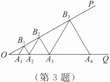 3. 如图,已知 $\angle POQ = 30^{\circ}$,点 $A_1$,$A_2$,$A_3$,… 在射线 $OQ$ 上,点 $B_1$,$B_2$,$B_3$,… 在射线 $OP$ 上,$\triangle A_1B_1A_2$,$\triangle A_2B_2A_3$,$\triangle A_3B_3A_4$,… 均为等边三角形. 若 $OA_1 = 2$,则 $\triangle A_6B_6A_7$ 的边长为(