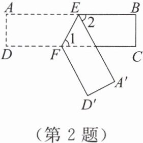 2. 如图,在长方形纸带 $ABCD$ 中,$AB // CD$,将纸带沿 $EF$ 折叠,$A$,$D$ 两点分别落在点 $A'$,$D'$ 处. 若 $\angle 1 = 62^{\circ}$,则 $\angle 2 = $(