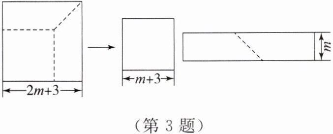 3. 如图,用边长为 $2m + 3$ 的正方形纸片剪出一个边长为 $m + 3$ 的正方形之后,剩余部分可剪拼成一个长方形. 若拼成的长方形一边长为 $m$,则该长方形的面积是(