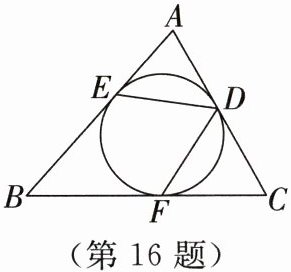 16. 如图,$ \triangle ABC $ 的内切圆与三边分别相切于点 $ D $,$ E $,$ F $. 若 $ \angle B = 50^{\circ} $,则 $ \angle EDF = $ ______.