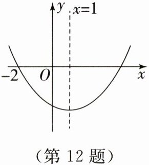 12. 如图,抛物线是二次函数 $y = ax^{2}-bx + c(a\neq0)$ 的图象,其对称轴为 $x = 1$,过点$(-2,0)$,则下列结论:① $abc>0$;② $b - 2a = 0$;③方程 $ax^{2}-bx + c = 0$ 的两根为 $x_{1}= -2$,$x_{2}= 4$;④ $9a + c<3b$. 其中正确的有( ).