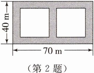 2. 如图,在长70m,宽40m的长方形花园中欲修宽度相等的观赏路(阴影部分),要使观赏路面积占总面积的$\frac{1}{4}$,则路宽x应满足的方程是(