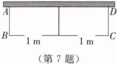 7. 如图,某校生物学兴趣小组用长为19m的篱笆,一面利用墙(墙足够长),围成中间隔有一道篱笆的长方形花圃ABCD,为了方便出入,建造篱笆花圃时在BC边留了宽为1m的两个进出口(不需材料)。若花圃的面积刚好为$36m^2,$设AB的长为x m,则可列方程为(