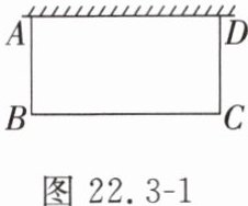 【例】某居民小区要在一块一边靠墙的空地上修建一个矩形花园 $ABCD$,花园的一边靠墙(墙长 $15$ m),另三边用总长 $40$ m 的栅栏围成(图 22.3 - 1)。若设花园的边 $AB$ 的长为 $x$ m,花园的面积为 $y$ $m^{2}$。