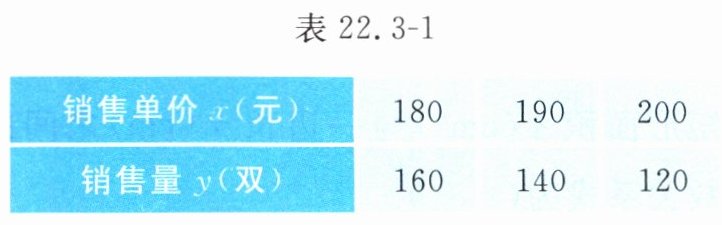 某品牌运动鞋很受顾客的喜爱,一家商场正在火热售卖该品牌运动鞋,每日销售量 $y$(双)与销售单价 $x$(元)之间存在一次函数关系,如表 22.3 - 1 所示。已知该品牌运动鞋的成本为 $150$ 元/双。