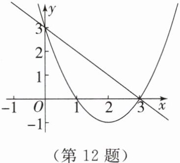 12. 如图,抛物线 $ y_1 = ax^2 + bx + c $ 与直线 $ y_2 = mx + n $ 相交于点 $ (3, 0) $ 和 $ (0, 3) $.若 $ ax^2 + bx + c > mx + n $,则 $ x $ 的取值范围是