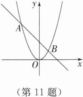 11. 如图,抛物线 $ y = ax^2 $ 与直线 $ y = bx + c $ 的两个交点分别为 $ A(-2, 4) $,$ B(1, 1) $,则关于 $ x $ 的方程 $ ax^2 = bx + c $ 的解是