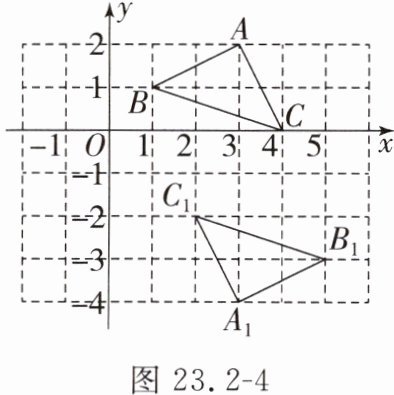 · 跟踪练习 如图 23.2 - 4,在平面直角坐标系中,若△ABC 与$△A_1B_1C_1 $关于点 E 对称,则点 E 的坐标是
