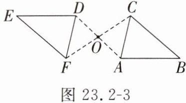 方法 2:如图 23.2 - 3,分别连接 AD,CF,交于点 O,则点 O 就是它们的对称中心。