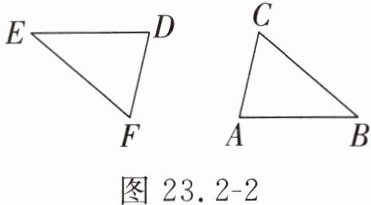 【例】如图 23.2 - 2,△ABC 与△DEF 关于某点对称,试作出它们的对称中心。