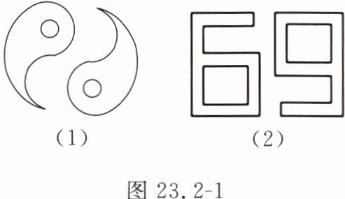 (2)是成中心对称的两个图形,由一个图形旋转180°得到另一个图形。特征:图