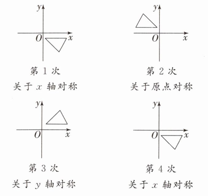 10. 如图,在平面直角坐标系中,对 $ \triangle ABC $ 进行循环往复的轴对称或中心对称变换。若原来点 $ A $ 的坐标是 $ (a,b) $,则经过第 $ 2026 $ 次变换后所得的 $ A $ 点的对应点的坐标是