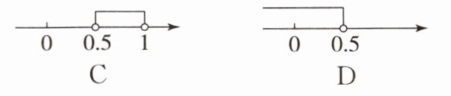 7. 已知点 $ M(1 - 2m,m - 1) $ 关于原点的对称点在第一象限,则 $ m $ 的取值范围在数轴上表示正确的是(