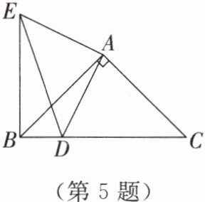 5. 如图,在$\triangle ABC$中,$\angle BAC = 90^{\circ}$,$AB = AC$,$BC = 2$。点$D在BC$上,且$BD:CD = 1:3$,连接$AD$,将线段$AD绕点A顺时针旋转90^{\circ}得到线段AE$,连接$BE$,$DE$,则$\triangle BDE$的面积是(