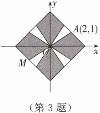3. 如图,阴影部分组成的图案是以原点$O$为对称中心的中心对称图形。若点$A的坐标是(2,1)$,则点$M$的坐标为(