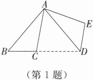 1. 如图,将$\triangle ABC绕点A逆时针旋转得到\triangle ADE$。若点$D在线段BC$的延长线上,$\angle B = 50^{\circ}$,则旋转角的度数为(