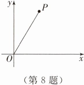 8. 如图,在平面直角坐标系中,将点$P(2,3)绕原点O顺时针旋转90^{\circ}得到点P'$,则点$P'$的坐标为