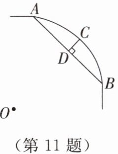 11. 如图,一条公路的转弯处是一段圆弧$\overset{\frown}{AB}$,点O是这段弧所在圆的圆心,$AB = 30$m,C是$\overset{\frown}{AB}$的中点,D是AB的中点,$CD\perp AB$于点D,且$CD = 5$m,求这段弯路所在圆的半径。