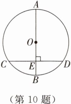 10. 如图,AB是$\odot O$的直径,CD是$\odot O$的弦,$CD\perp AB$于点E。若$AE = CD = 8$,求$\odot O$的半径。