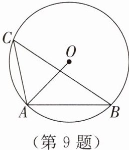 9. 如图,$ \triangle ABC $ 内接于 $ \odot O $,$ \angle C = 46^{\circ} $,连接 $ OA $,则 $ \angle OAB = $(