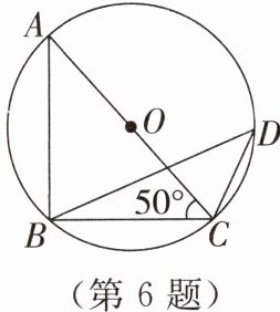 6. 如图,$ AC $ 是 $ \odot O $ 的直径,$ \angle ACB = 50^{\circ} $,点 $ B $ 是圆上一点,点 $ D $ 是弧 $ BAC $ 上一点,则 $ \angle D = $