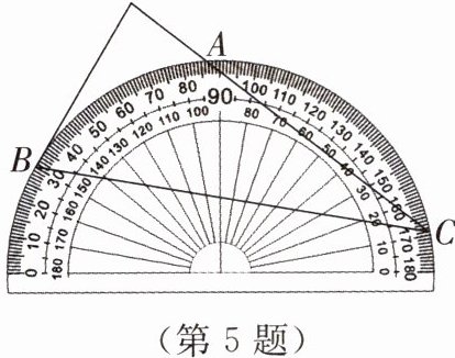 5. 将量角器按如图所示的方式放置在三角形纸板上,使点 $ C $ 在半圆上,点 $ A $,$ B $ 处的读数分别为 $ 86^{\circ} $,$ 30^{\circ} $,则 $ \angle ACB $ 的度数是(