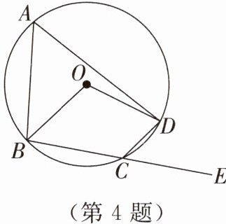 4. 如图,四边形 $ ABCD $ 内接于 $ \odot O $,$ E $ 为 $ BC $ 延长线上一点。若 $ \angle DCE = 55^{\circ} $,则 $ \angle BOD $的度数是(