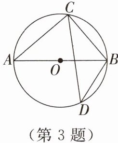 3. 如图,$ AB $ 是 $ \odot O $ 的直径,$ C $,$ D $ 是 $ \odot O $上两点,$ \angle CDB = 40^{\circ} $,则 $ \angle ABC $ 的度数是(