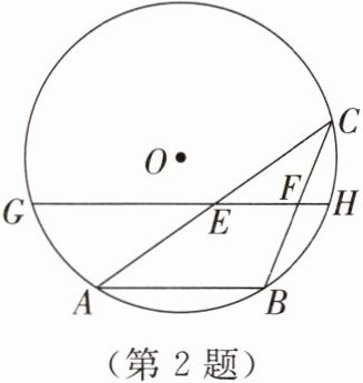 2. 如图,$ AB $ 是 $ \odot O $ 的一条弦,$ C $ 是 $ \odot O $ 上一动点,且 $ \angle ACB = 30^{\circ} $,$ E $,$ F $ 分别是 $ AC $,$ BC $ 的中点,直线 $ EF $ 与 $ \odot O $ 交于 $ G $,$ H $ 两点. 若 $ \odot O $ 的半径为 $ 8 $,则 $ GE + FH $ 的最大值为(