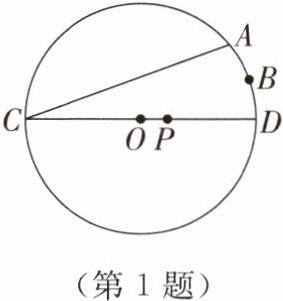 1. 如图,$ CD $ 是 $ \odot O $ 的直径,$ CD = 8 $,$ \angle ACD = 20^{\circ} $,点 $ B $ 为弧 $ AD $ 的中点,点 $ P $ 是直径 $ CD $ 上的一个动点,则 $ PA + PB $ 的最小值为