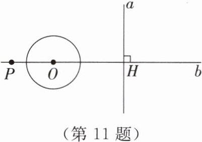 11. 如图,直线$a\perp b$,垂足为$H$,点$P在直线b$上,$PH = 4cm$,$O为直线b$上一动点,若以$1cm为半径的\odot O与直线a$相切,求$OP$的长。
