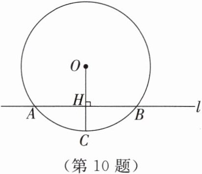 10. 如图,$\odot O的半径OC = 5cm$,直线$l\perp OC$,垂足为$H$,且$l交\odot O于A$,$B$两点,$AB = 8cm$,则$l沿OC所在直线向下平移多少厘米时与\odot O$相切?