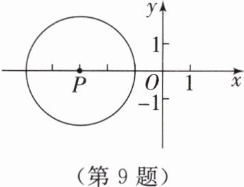 9. 如图,在平面直角坐标系$xOy$中,半径为$2的\odot P的圆心P的坐标为(-3,0)$,将$\odot P沿x$轴正方向平移,使$\odot P与y$轴相切,则平移的距离为