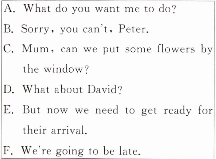 根据对话内容从下面方框内的六个选项中选择五个填入空白处,使对话通顺、合理,意思完整。一空一句。