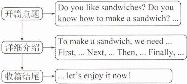 详细介绍→To make a sandwich, we need ... First, ... Next, ... Then, ... Finally, ...