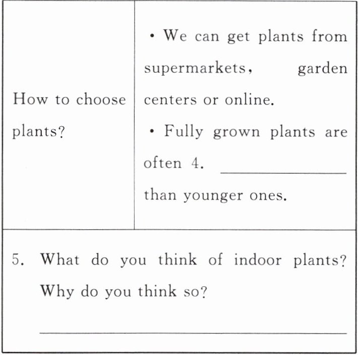 5. I think they are helpful. Because they can make us relax and clean the air around us. /...(言之有理即可)