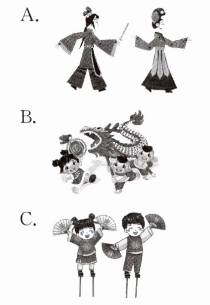)1. Students performed stilts in Lusha’er town during ______.A. the Spring Festival