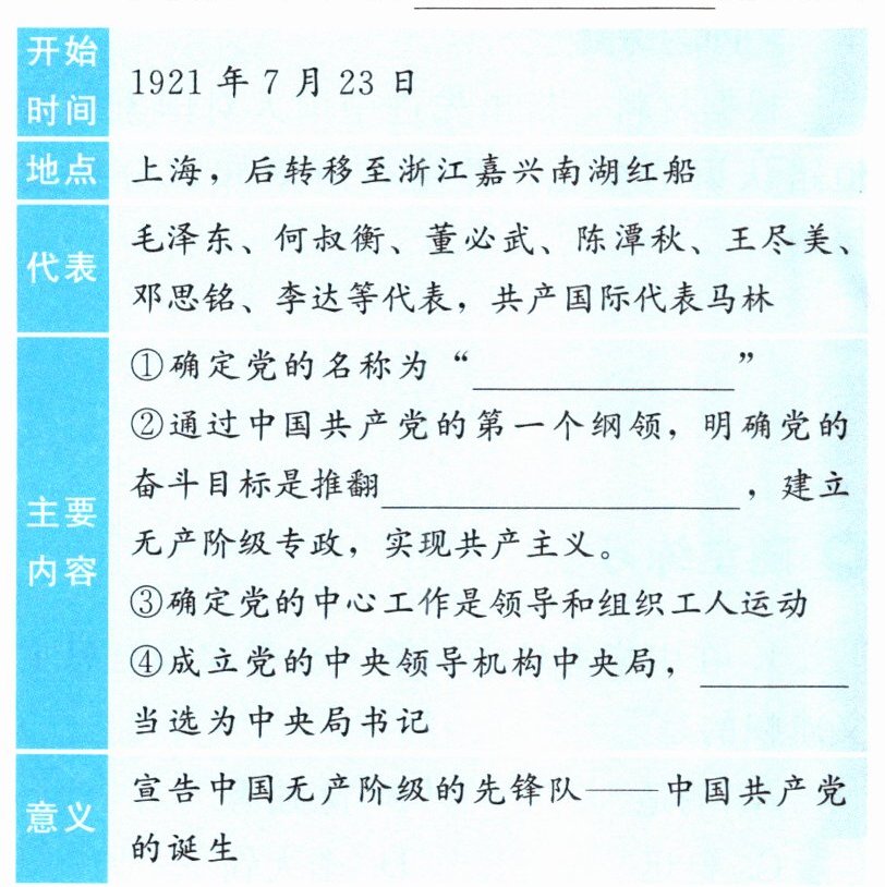 1. 陈独秀 上海 2. 中国共产党第一次全国代表大会 中国共产党 资产阶级政权 陈独秀 3. 谋幸福 谋复兴