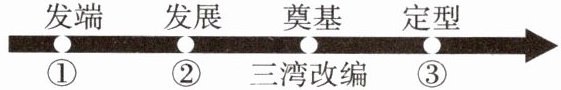 2. 下图反映了党对军队绝对领导的发展历程,图中①②③对应的史实完全正确的是(