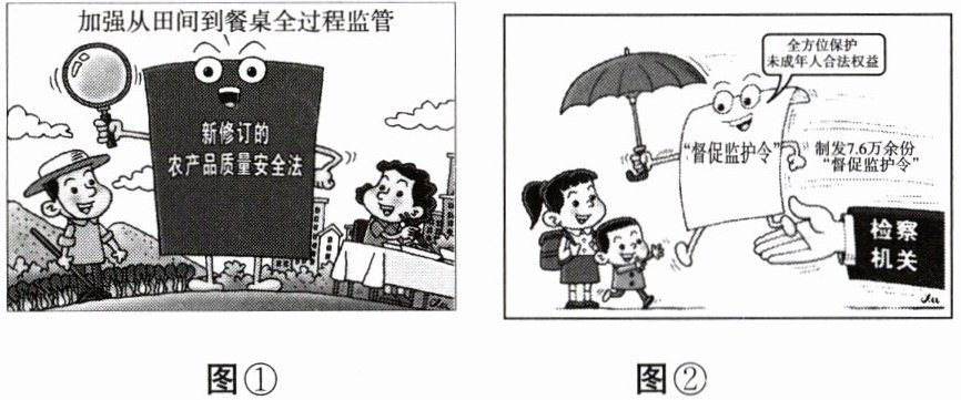 (1)综合图①、图②,请你为两幅漫画拟定一个主题。(2 分)