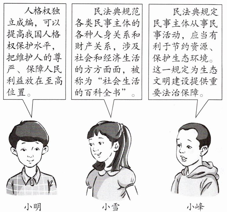 19. 自2021年1月1日起,《中华人民共和国民法典》开始施行。为了更好地学法、守法、用法,某校九年级(1)班举办了“沐浴法治阳光·畅谈民法典”法治论坛。以下是论坛的部分内容,请你阅读并运用相关法律知识回答问题。