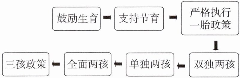 材料二 课堂上,老师出示了我国人口政策演变历程的图示,同学们就此展开了讨论。