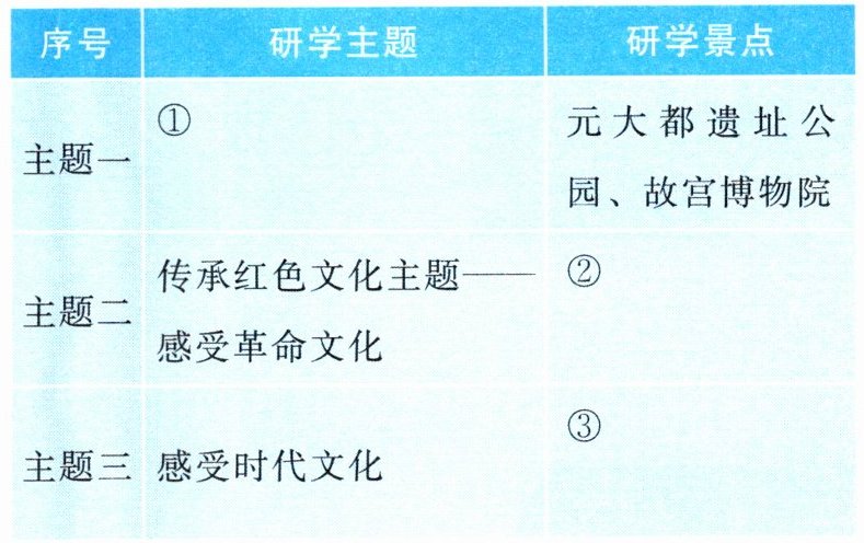 (1)请你参与策划,结合所学,将研学主题和研学景点补充完整。